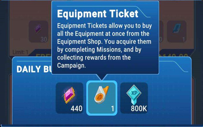 - Completing missions in the campaign mode often results in receiving equipment tickets as part of the mission completion rewards.