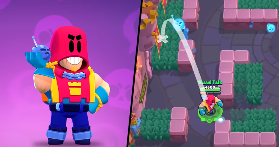 Es vigilante del castillo de Starr Park, su mejor amigo es un walkie-talkie y le dan miedo los niños. Para ocultar su miedo, se cubre la cara con una sudadera con una cara sonriente. Es un brawler destructor que lanza bombas que explotan en cuatro direcciones distintas cuando tocan el suelo. Su súper es muy parecido, pero mucho más destrutivo. Y también destruye muros.