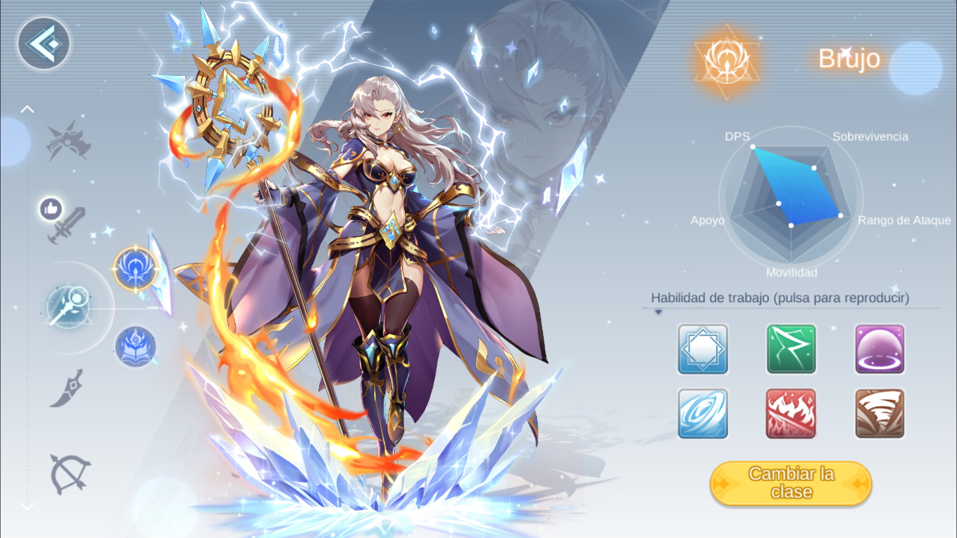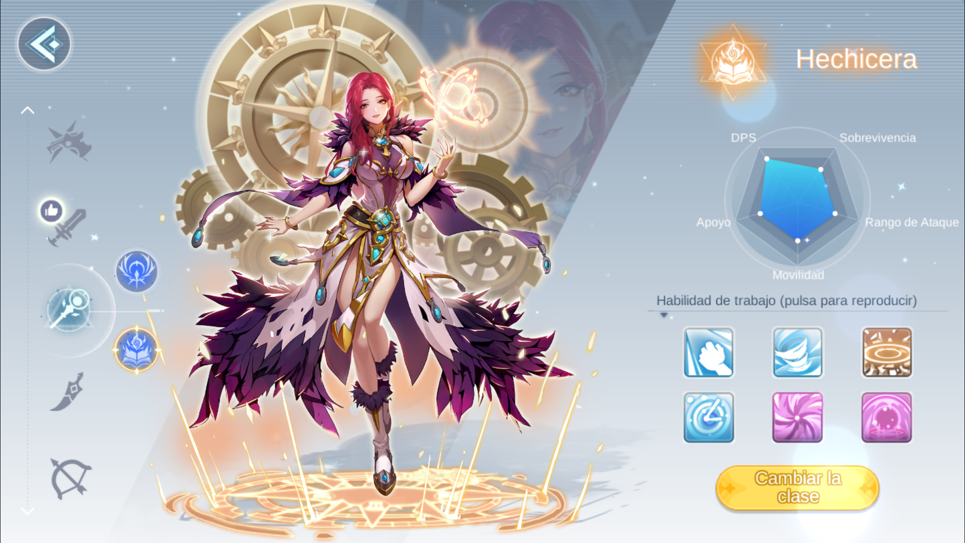 Aunque los Hechiceras no tienen el poder ofensivo puro de los Brujos, pueden lanzar hechizos de apoyo como debuffs o crear esferas. La habilidad Campo Especial aumenta la Reducción Neutral ATK y DMG de los aliados en un área, mientras que Campo de Tiempo aumenta el enfriamiento y el intervalo de las habilidades de todos los enemigos en la esfera durante 30 segundos.