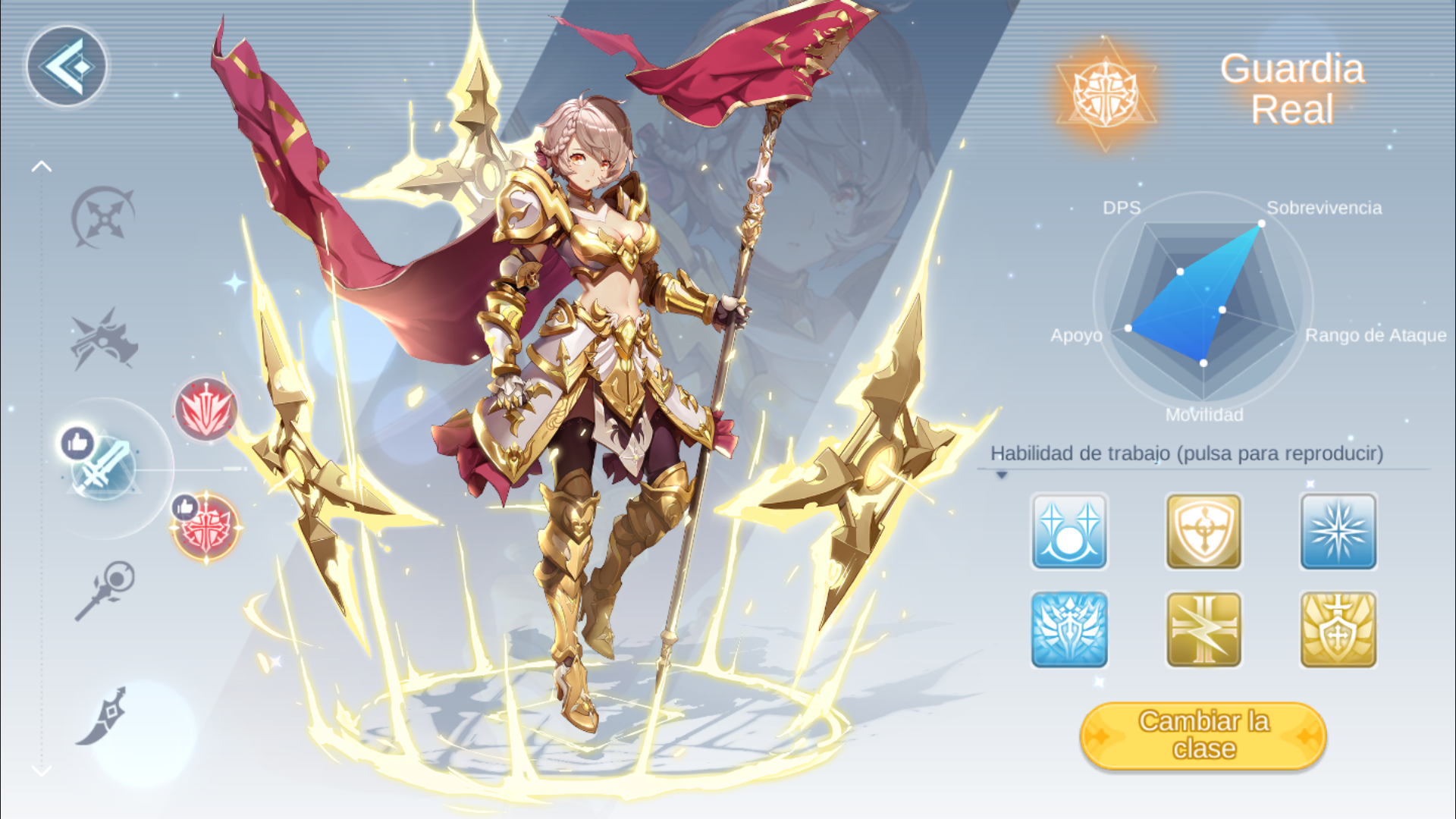 Guardia Real es una clase cuerpo a cuerpo con una gran cantidad de habilidades defensivas y de apoyo que son excelentes para proteger a su equipo. Tienen beneficios que otorgan inmunidad de estado anormal o reflejan el Daño Mágica Sagrado. Una habilidad llamada Protección Divina une a todos los compañeros de equipo en un radio de 5 metros y crea un aura de Divine Avenger que restaura el HP a todos.