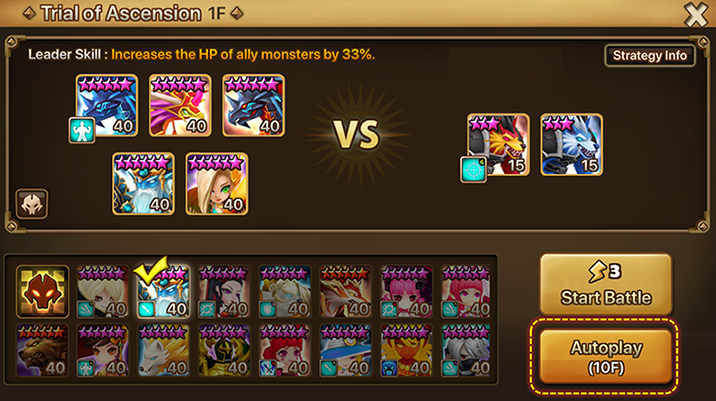 : La función de reproducción automática [Trial of Ascension] se puede usar junto con la batalla repetida.