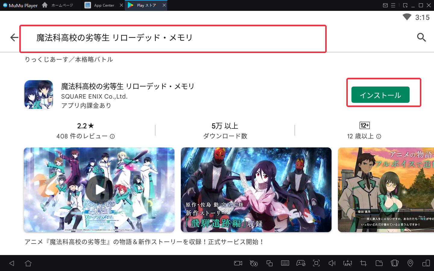MuMu Playerを使ってPCで『魔法科高校の劣等生 リローデッド・メモリ』をプレイする一番いいところは、これが簡単にできることです。最初は次のような簡単な手順を踏んでください。『魔法科高校の劣等生 リローデッド・メモリ』をPCでプレイする手順をご参考してください。
