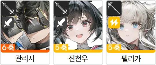 추천 조합: 관리자(주인공) + 진천우 + 펠리카 + 서브 1