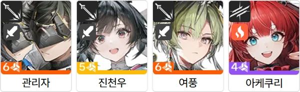 추천 조합2: 관리자 + 진천우 + 여풍 + 아케쿠리