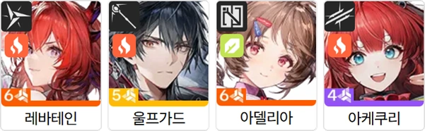 추천 조합: 레바테인 + 울프가드 + 아델리아 + 아케쿠리