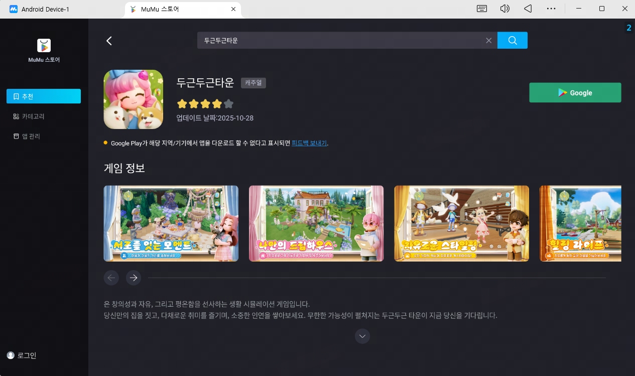 뮤뮤 앱플레이어(MuMuPlayer)에서 두근두근타운 PC 버전 다운로드 및 설치 가이드