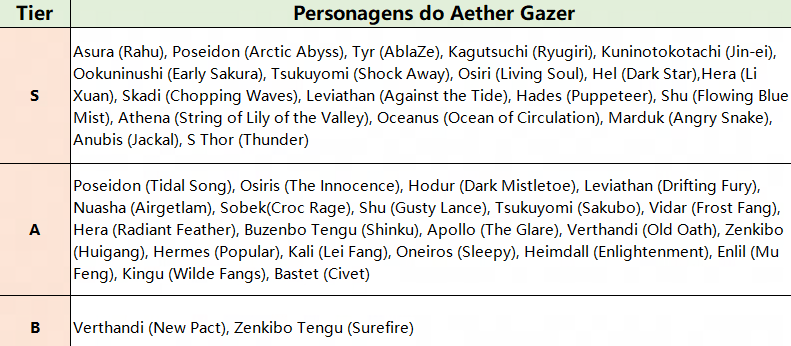 Como a versão global do jogo ainda não foi lançada, esses dados são baseados na versão CN e vêm desta planilha Aether Gazer CN extremamente útil e liderada pela comunidade. Naturalmente, alguns dos personagens podem sofrer grandes alterações e mudanças antes do lançamento global, mas atualizaremos este guia assim que colocarmos as mãos neles.