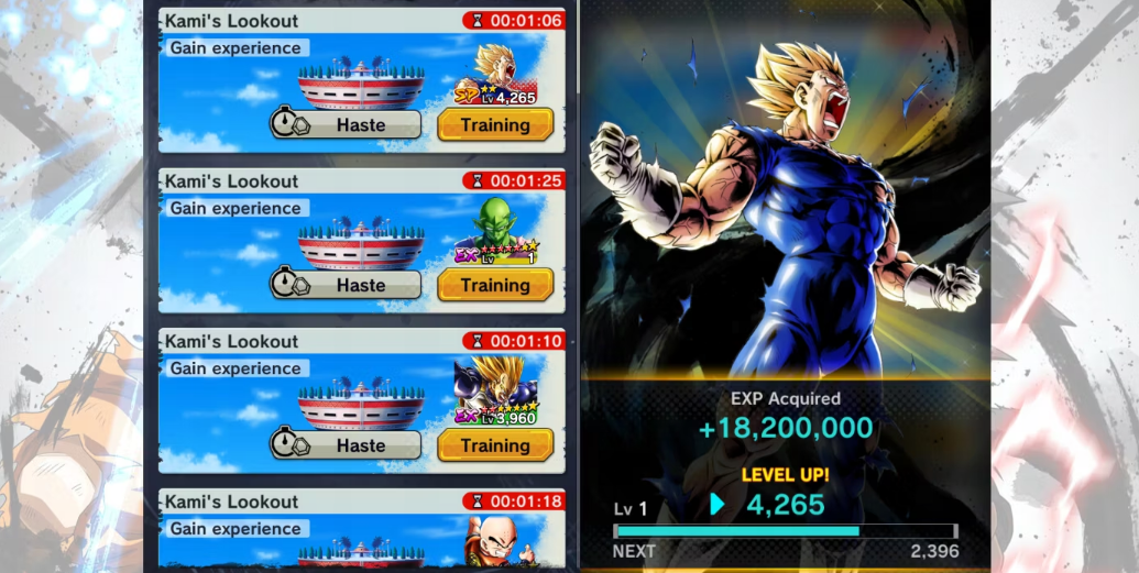 Subir de nível é um processo de duas etapas em Dragon Ball Legends. Você precisa aumentar o nível de sua unidade impulsionando-a com alma e aumentar seu nível para 5000, facilmente obtido em minutos fazendo eventos de treinamento. Embora aumentar a alma do seu personagem seja igualmente fácil, tudo o que você precisa fazer é encher seu personagem de almas para aumentar suas estatísticas.