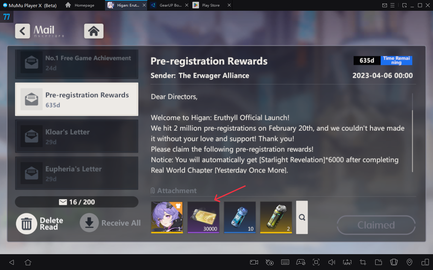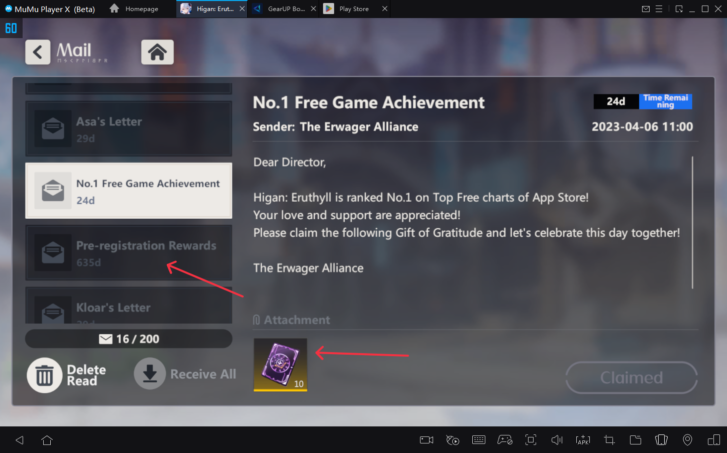 - Reivindique as recompensas de pré-registro na caixa de correio do jogo