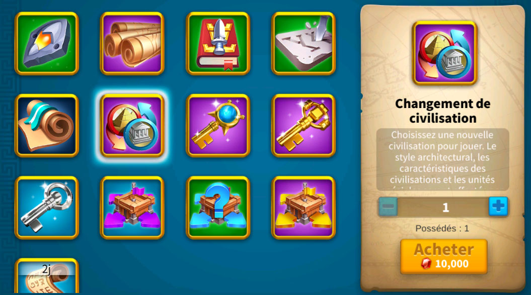 Para mudar de civilização antes do nível 10, ou se você já usou seu token e deseja mudar para outra nação, você tem várias opções. Primeiro, pague em gemas. À medida que o jogo avança, você terá a oportunidade de obter gemas gratuitamente (embora em pequeno número). Para obter mais gemas, você terá que comprá-las no checkout. Essas gemas podem ser usadas para comprar um token.