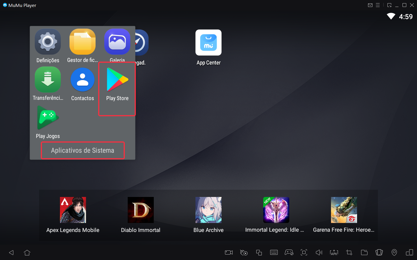 1. Clique no Google Play de "Aplicativos de Sistema" na área de trabalho do emulador