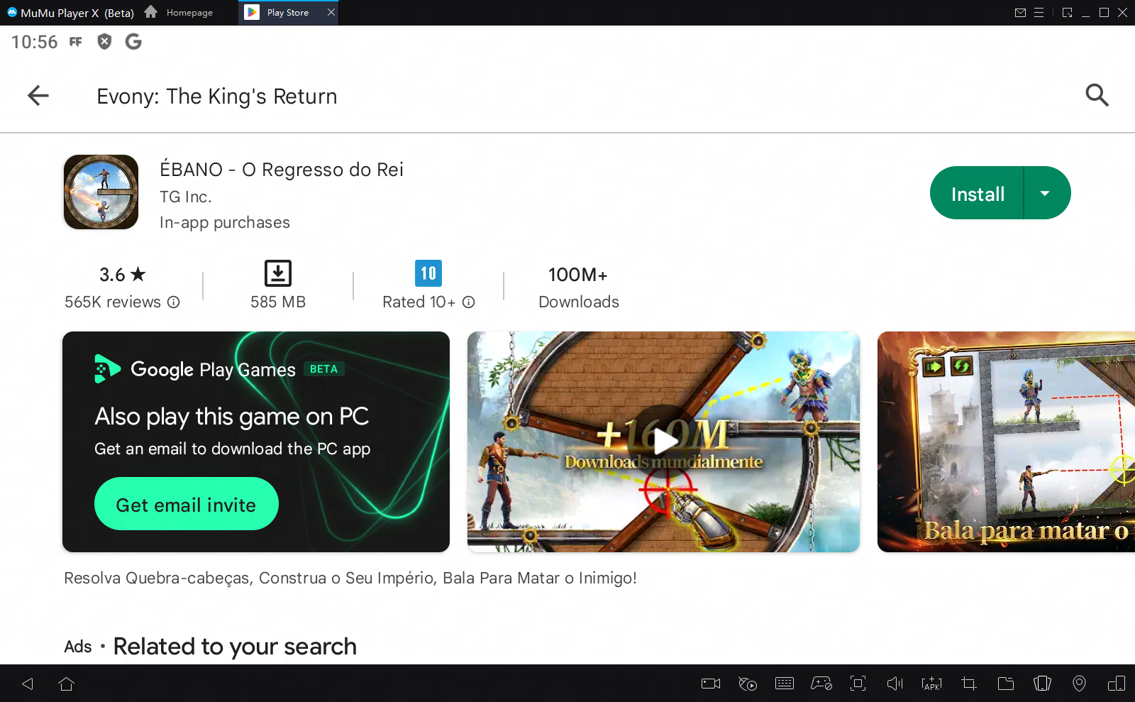 2. Conclua o login do Google e pesquise Evony: O Regresso do Rei na Play Store
