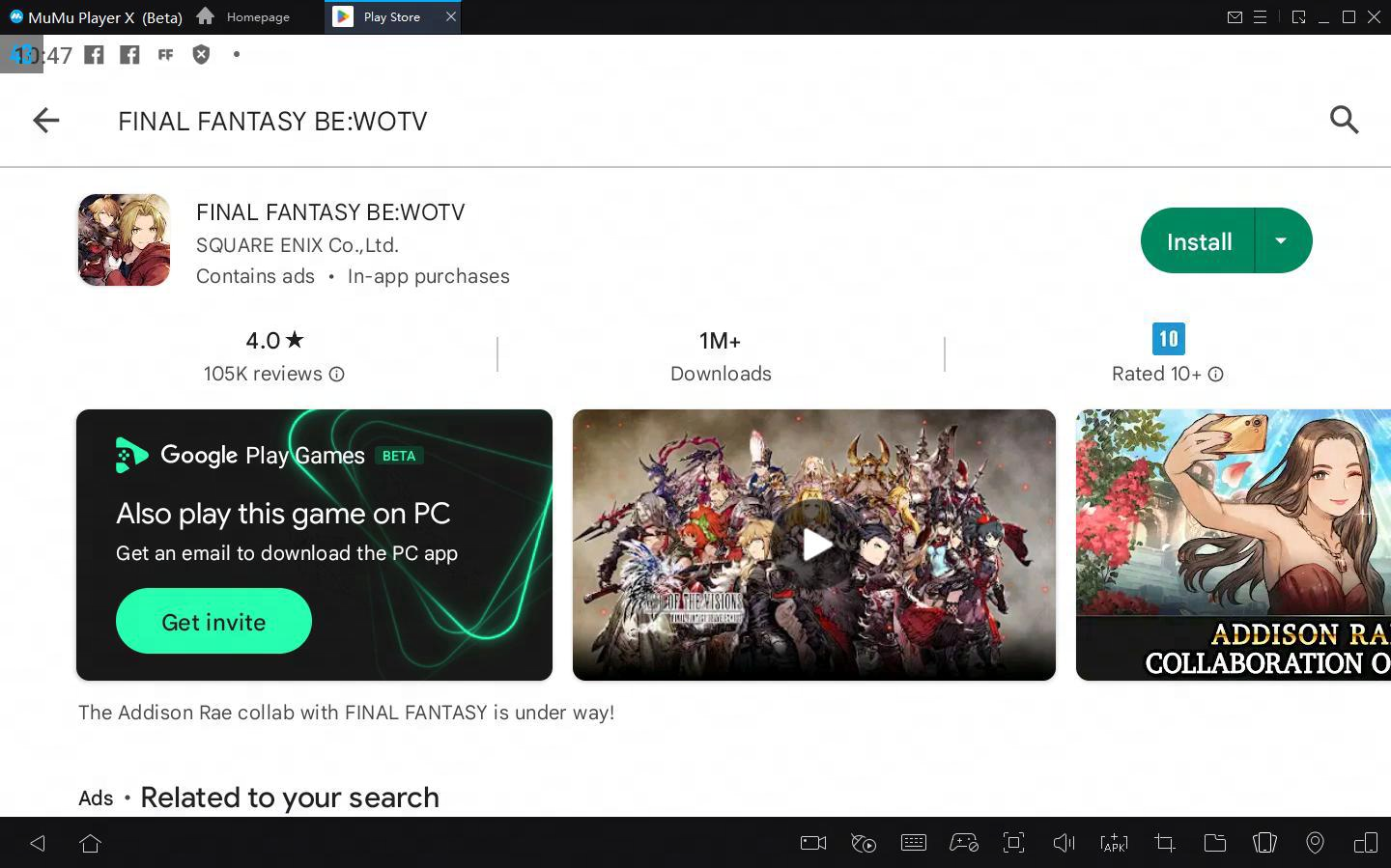 3. Clique para fazer o download do FINAL FANTASY BE:WOTV resultado da pesquisa