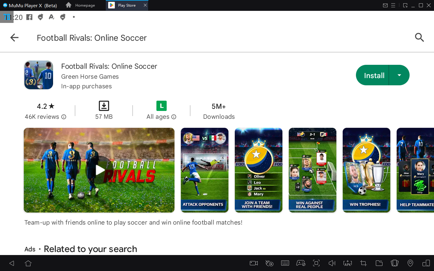 Depois de concluir essas etapas, que levam apenas alguns minutos para serem concluídas, você desfrutará de usar Football Rivals no PC com os melhores controles, gráficos e desempenho e outras funções brilhantes fornecidas pelo MuMu Player. Agora comece sua experiência de jogo no mundo de Football Rivals no PC com MuMu Player!