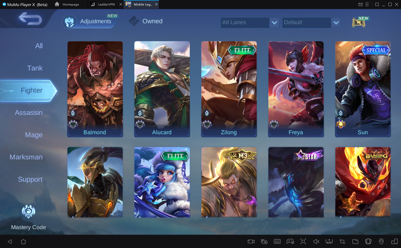 Os lutadores estão no meio de um assassino e um tanque. Embora não tenham alto dano ou saúde, esses heróis se destacam no final do jogo após o aumento de escala. No final do jogo, eles podem assumir o papel de um tanque ou até mesmo de um assassino.