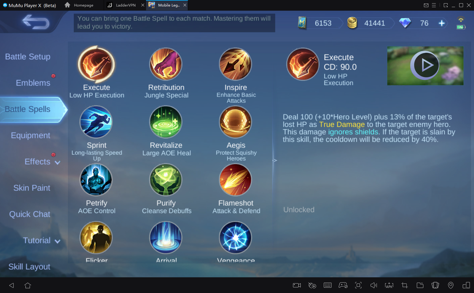 - Feitiços de batalha: são feitiços especiais que podem ser selecionados antes de uma partida. Eles podem dar um escudo aos heróis ou curá-los quando usados.