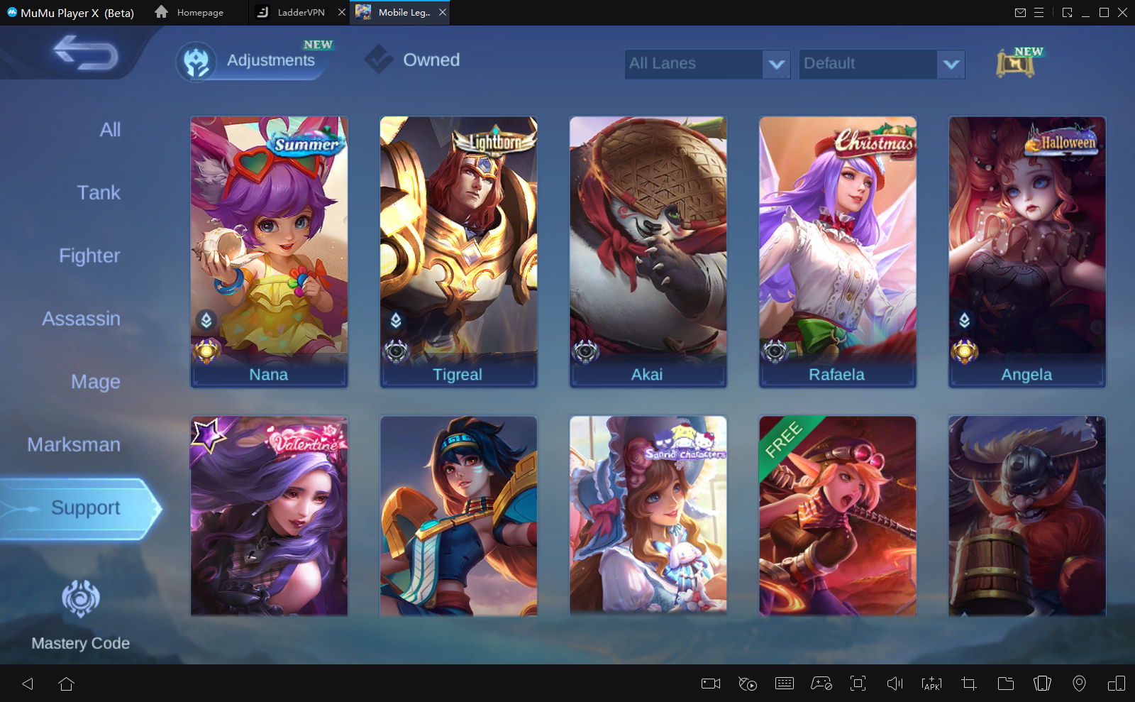 Depois de ter uma ideia do mapa, você precisa aprender sobre as funções no MLBB antes de entrar em um jogo. Existem mais de 110 heróis no MLBB, cada um com habilidades diferentes. Normalmente, cada herói vem com três habilidades e uma passiva. A última das três habilidades é a suprema, uma habilidade extremamente poderosa que é desbloqueada mais tarde no jogo e tem um tempo de recarga mais longo.