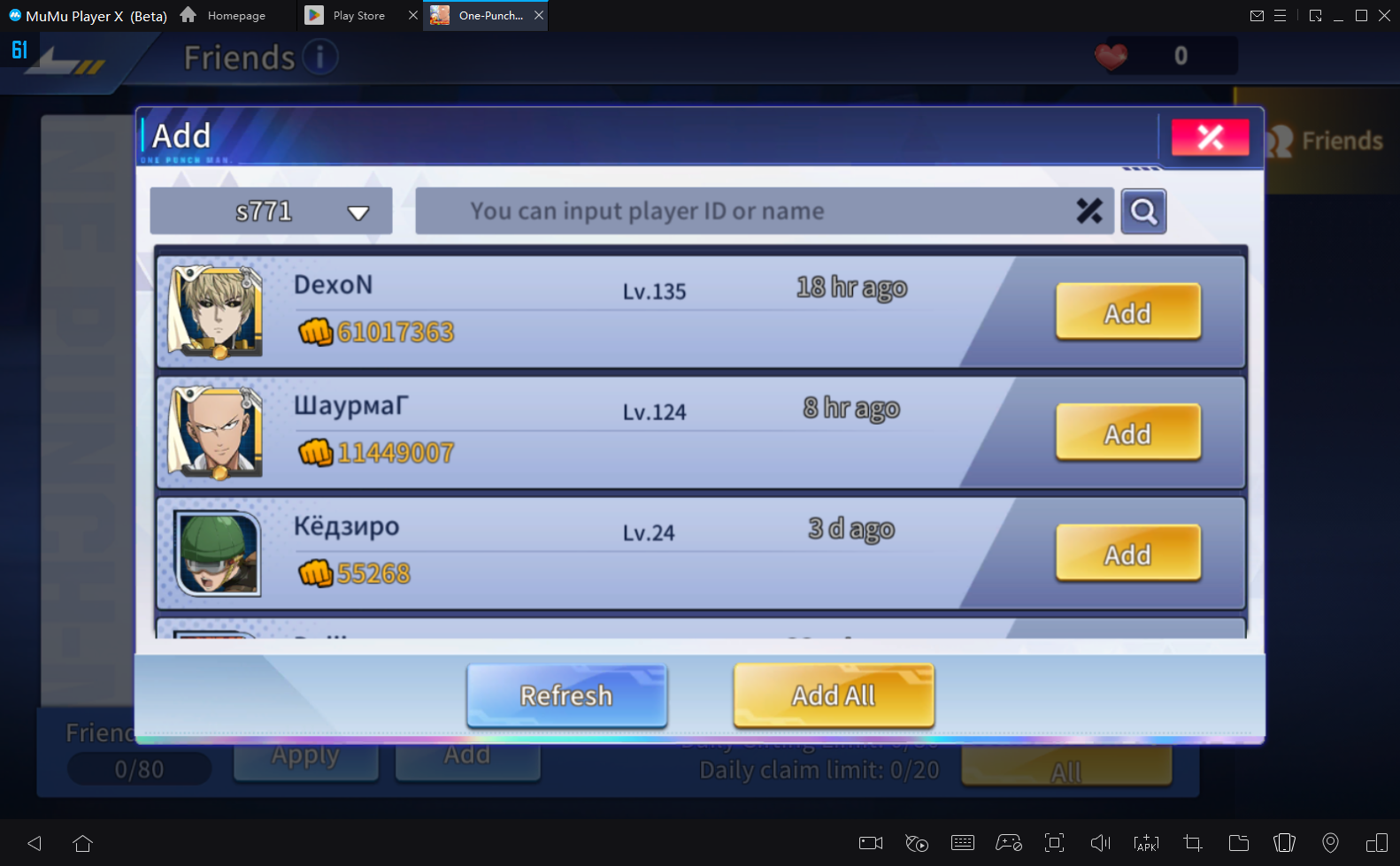 Em One-Punch Man: Road to Hero 2.0, você está em uma competição indireta com outros jogadores para formar o melhor time. Isso não significa que você não possa ajudar seus amigos e receber o apoio deles em troca. Certifique-se de obter o máximo diário de 20 pontos de amizade. Eles permitem que você recrute 2 novos heróis todos os dias gratuitamente.