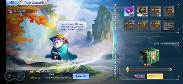 O Mestre dos Cinco Picos não deve ser esquecido: você deve atualizar este lugar para ter mais resistência como presente todos os dias e mais e mais recompensas. Graças ao Train Ground, você cultivará reforços que podem ser usados nas várias sessões de cultivo, o que duplicará suas recompensas (não subestime esse aspecto). Entre as outras despesas a serem incorridas estão as de Saint Quest. Nesse caso, você pode interagir com alguns personagens (básicos) para obter prêmios interessantes, como diamantes, fragmento de personagem, flores para as atualizações e às vezes até Tickets para enfrentar os inimigos no Train Hall. Com algumas moedas você poderá recuperar os fragmentos necessários para obter os personagens que serão desbloqueados com o avanço na história principal. Não se desespere, a despesa em nossa opinião é reembolsada e lentamente você também completará todos esses pedidos, evocando assim os personagens se você não os tiver ou pode ser usado para aprimorar suas habilidades.