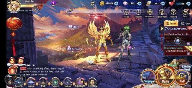 O título de Tencent está completo, há uma parte substancial PvE e uma parte PvP cheia de pessoas e desafios para cada jogador. Até agora o jogo parece bonito e imperdível (e é), mas a desvantagem é que não é de forma alguma um simples Free to Play, mas chega perto de um push Pay to Win. Por esta razão, decidimos escrever este guia para novos jogadores de Saint Seiya: Awakening que não querem gastar dinheiro com o título, mas que querem crescer de forma sustentável sem desperdiçar os recursos necessários para se divertir e obter resultados muito bons.