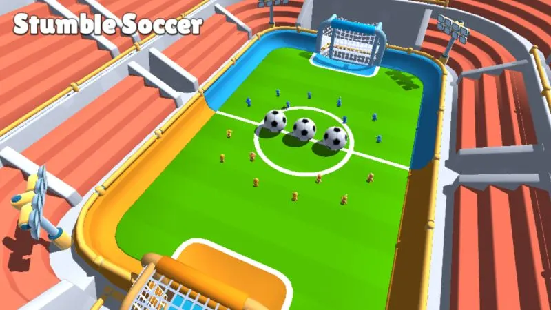 Em Stumble Soccer, como o nome do nível indica, você joga uma partida de futebol. Há três bolas de futebol gigantescas no campo e você precisa acertá-las no gol do time adversário. Você precisará usar a câmera mencionado acima extensivamente.