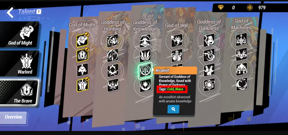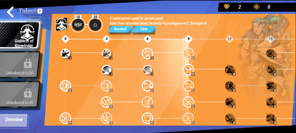 O terceiro painel de talentos não tem restrições na seleção de seus painéis de talentos, mas é aconselhável se ater aos painéis de talentos avançados para se concentrar na construção pretendida. Você deve escolher seu painel de talentos básico com cuidado, prestando atenção às tags listadas na visão geral do painel de talentos Por exemplo, se você deseja que seu personagem Frostfire seja um lançador de feitiços puro, você deve verificar Goddess of Knowledge para aumentar sua estatística de INT e potência/mana de feitiço.