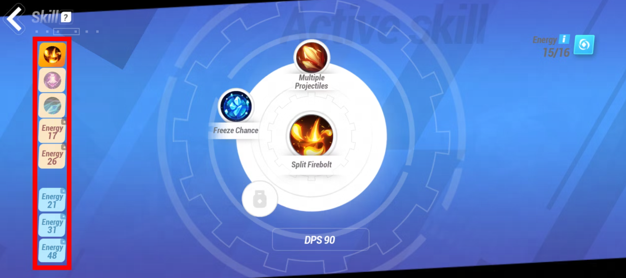 Visualização do slot de habilidade em Torchlight: Infinite