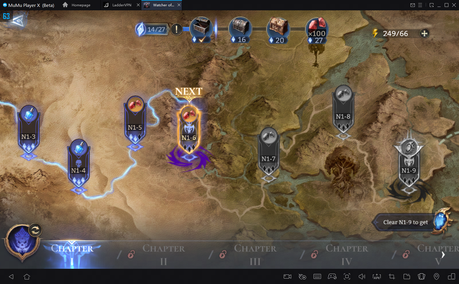 Há um total de 18 capítulos, cada um contendo pelo menos 9 missões. De todas as missões concluídas, você receberá uma recompensa, incluindo joias, EXP e materiais de atualização de heróis. Complete essas missões o mais rápido possível, porque quanto mais cedo você conseguir Volka, mais cedo poderá adicioná-la à sua equipe e começar a atualizá-la.