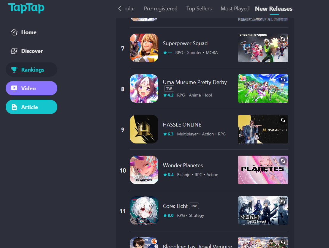 С момента запуска игра доминировала 1-е место в российском списке Google, а список новинок TapTap также поднялся на 9-е место.