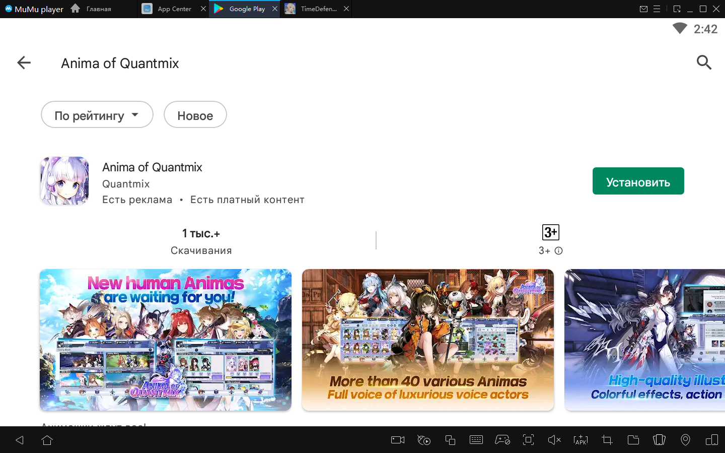 2. Завершите вход в Google и найдите Anima of Quantmix в Play Store.