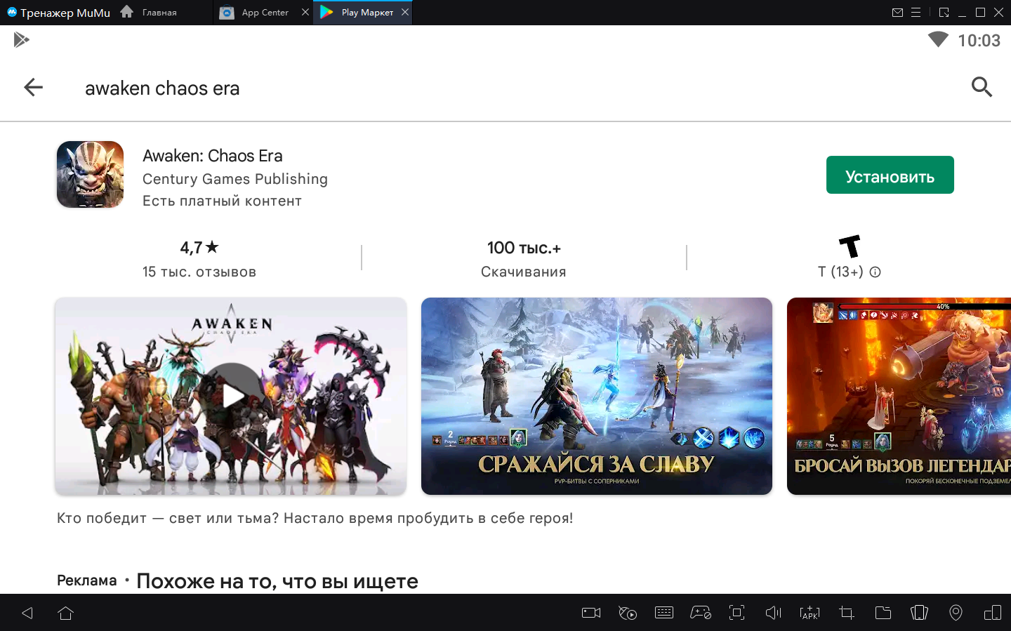 2. Завершите вход в Google и найдите Awaken: Chaos Era в Play Store.