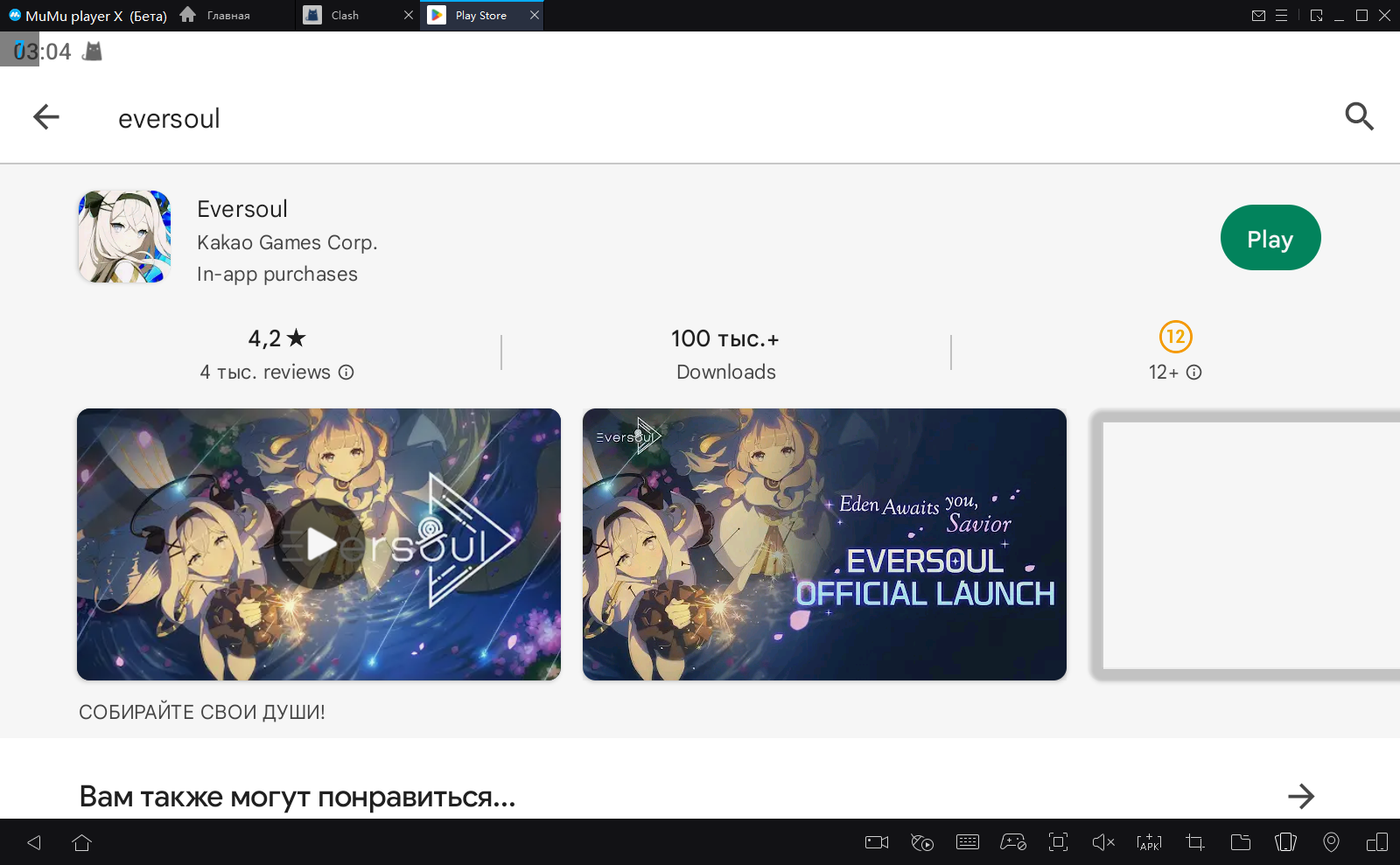 2. Завершите вход в Google и найдите Eversoul в Play Store.