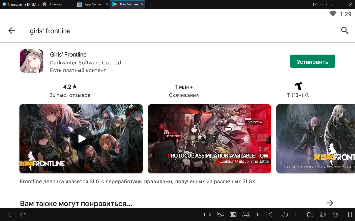 2. Завершите вход в Google и найдите Girls' Frontline в Play Store.