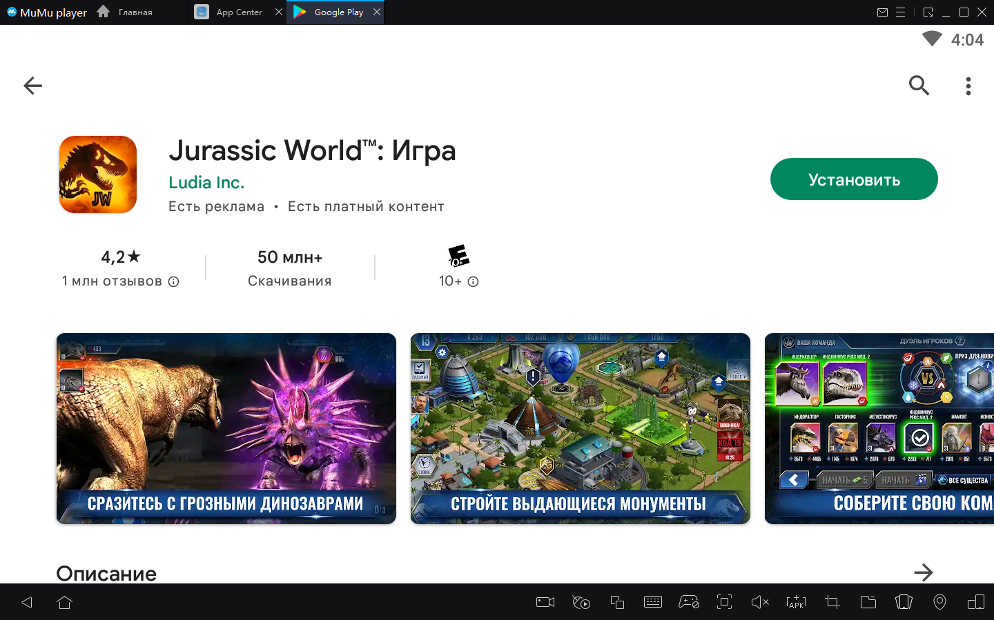 2. Завершите вход в Google и найдите Jurassic World™: Игра в Play Store.