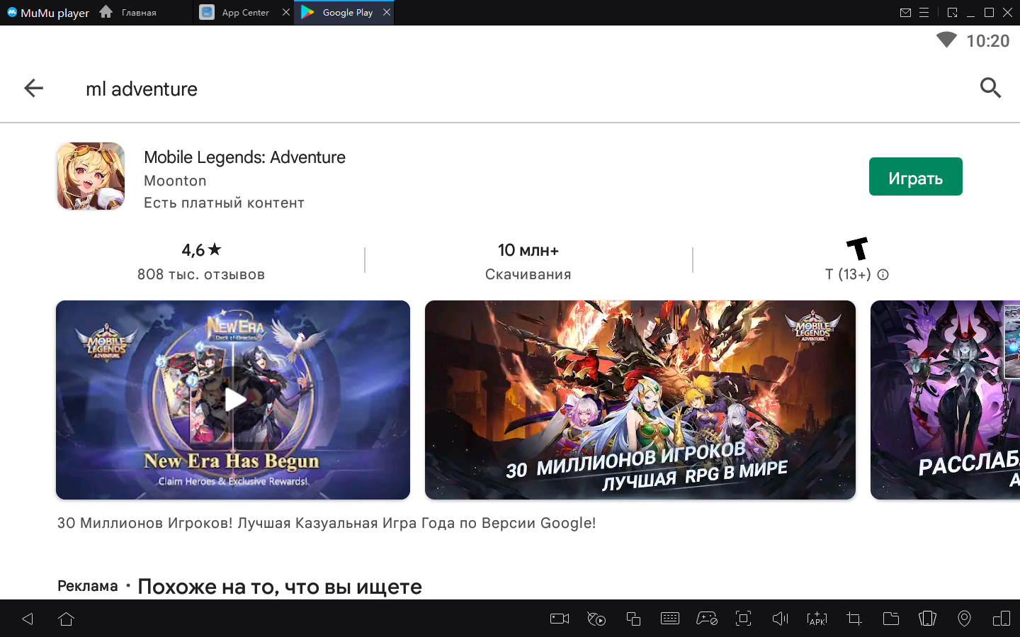 2. Завершите вход в Google и найдите Mobile Legends: Adventure в Play Store.