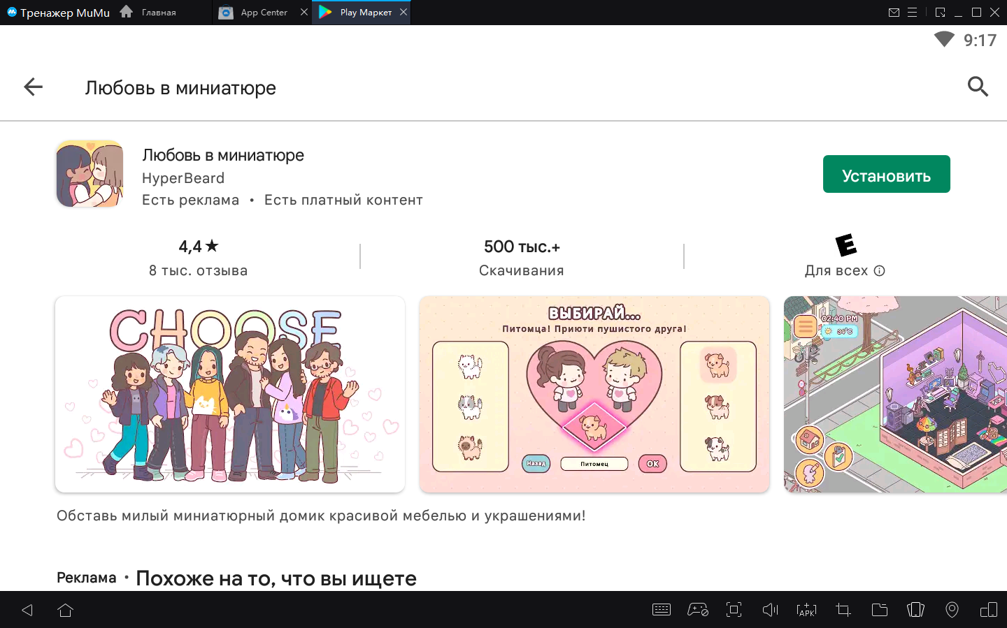 2. Завершите вход в Google и найдите Любовь в миниатюре в Play Store.