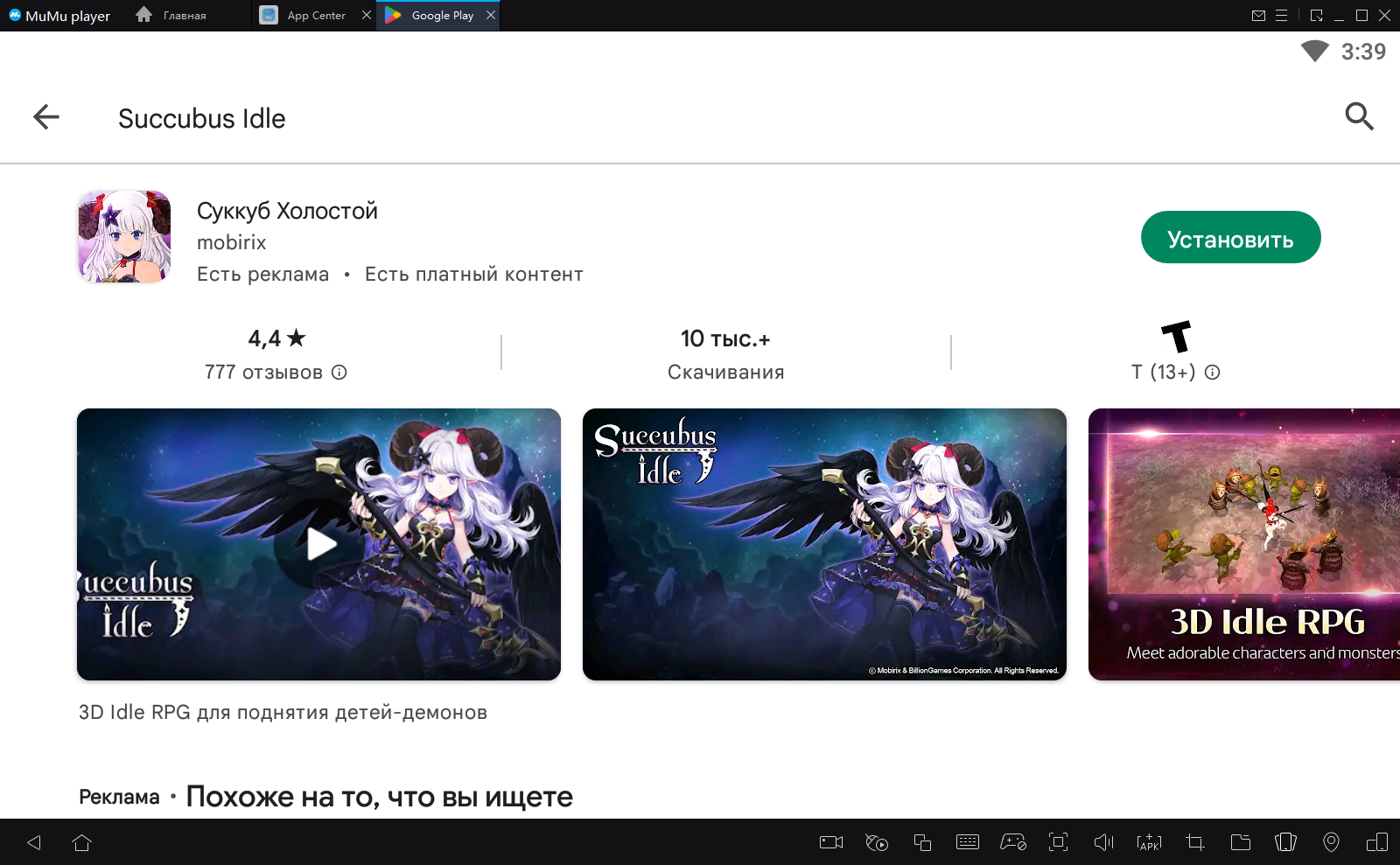2. Завершите вход в Google и найдите Succubus Idle в Play Store.