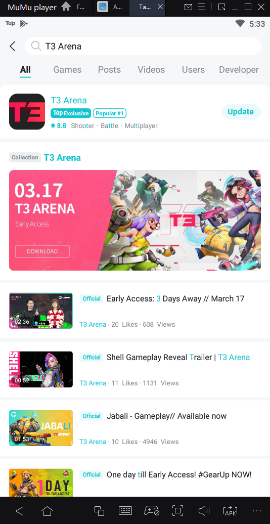 3. Нажмите, чтобы загрузить T3 Arena из результатов поиска