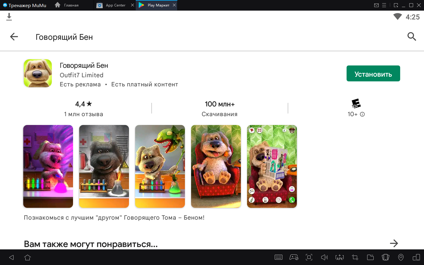 2. Завершите вход в Google и найдите Говорящий Бен в Play Store.