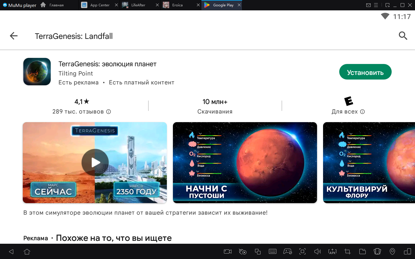 2. Завершите вход в Google и найдите TerraGenesis: Landfall в Play Store.