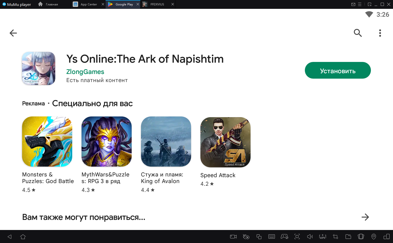 2. Завершите вход в Google и найдите Ys Online:The Ark of Napishtim в Play Store.
