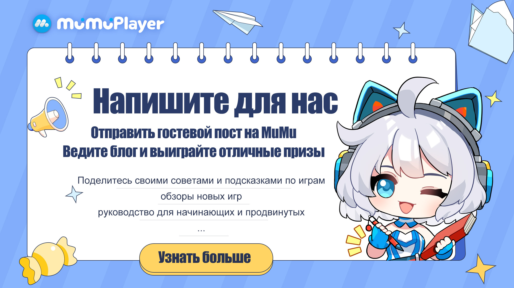 Благодарим вас за интерес к написанию гостевого поста для MuMu. Мы приветствуем всех геймеров/личных блоггеров, которые будут писать высококачественные статьи для MuMu Player, официального сайта MuMu, цель которого - держать геймеров в курсе последних игровых новостей, игровых событий, читов и руководств по мобильным играм и т.д. Вы можете получить известность через наш официальный блог и наши каналы социальных сетей, чтобы поделиться своим игровым опытом с более широкой аудиторией и геймерами. Если вы хотите поделиться своими статьями, советами по игре, опытом тестирования портативных игр и т.д. на официальном сайте MuMu Player, пожалуйста, ознакомьтесь со следующими рекомендациями по отправке ваших статей.
