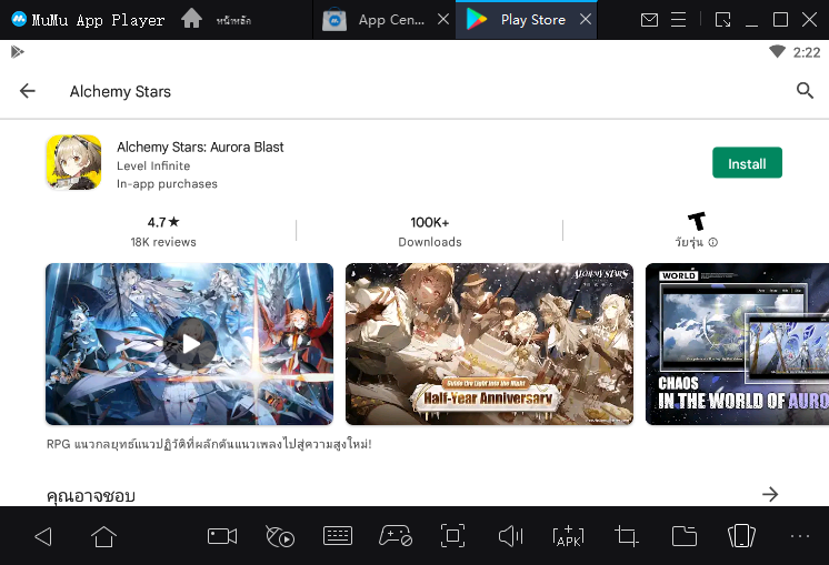 เพื่อที่จะเล่นเกมมือถือที่คุณชื่นชอบบนพีซี MuMu Player เป็นตัวเลือกที่ชาญฉลาดของคุณ ส่วนที่ดีที่สุดเกี่ยวกับการเล่น Alchemy Stars บนพีซีด้วย MuMu Player คือมันค่อนข้างง่ายที่จะทำเช่นนั้น ในการเริ่มต้น ให้ทำตามขั้นตอนง่าย ๆ เหล่านี้: