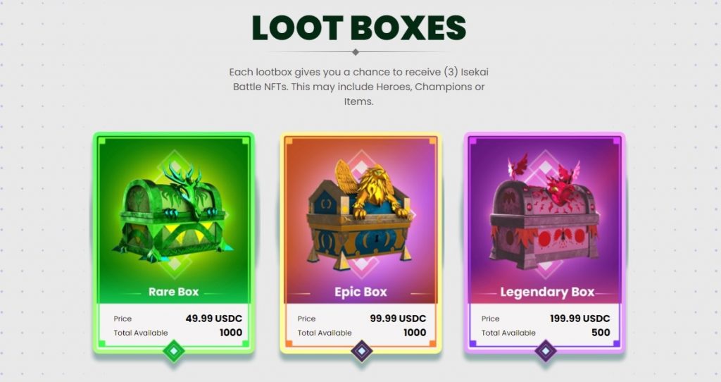Rare Loot Box จะได้รับ NFT 3 ชิ่นแบบสุ่ม (Hero, Champion, item)