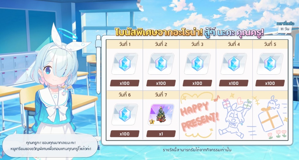 อีกทั้งเพื่อเป็นการฉลองการอัปเดตเนื้อเรื่องบทใหม่ ทาง Nexon ได้มอบของขวัญสุดพิเศษ 1,200 เพชรฟ้าสำหรับเซ็นเซทุกท่านที่ล็อกอินเข้าเกมภายในวันที่ 2 ส.ค. 2022 (อ) อีกทั้งรับอีก 100 เพชรฟ้าจากกิจกรรมเช็กอินตลอด 7 วันจนถึงวันที่ 9 ส.ค. 2022 (อ) และจะได้รับไอเทมสุดพิเศษ เฟอร์นิเจอร์ (3★) “ต้นคริสต์มาสระยิบระยับ” เมื่อล็อกอินครบ 7 วัน