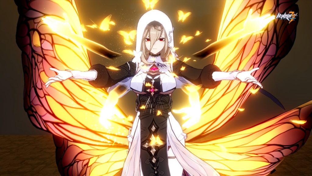 Aponia ผู้ที่เพิ่งปรากฏตัวเมื่อไม่นานมานี้ จะนำบททดสอบแห่งโชคชะตามาสู่ผู้มีบาปในเวอร์ชันใหม่นี้ ด้วยชุดสูทระดับ S [Disciplinary Perdition] ซึ่งเป็นชุดสูทระดับ S ประเเภทชีวภาพ สร้างความเสียหายไฟฟ้าด้วยอาวุธกงจักร เมื่ออยู่ต่อหน้าผู้ใช้พลังจิตที่แข็งแกร่งที่สุดในหมู่ MANTIS ผู้คนไม่เพียงจะรู้สึกถึงความศักดิ์สิทธิ์จาก Aponia แต่ยังรู้สึกถึงแรงกดดันด้วย ดวงตาของเธอจะลืมตาเพียงครึ่งเดียวอยู่เสมอ บางทีนั่นอาจจะเป็นวิธีที่เธอมองเห็น “เส้นด้ายแห่งโชคชะตา” ที่เธอพูดถึงได้ง่ายขึ้นก็เป็นได้ ชุดของ Aponia นั้นจะมีส่วนประกอบของผ้าคลุมและหนาม รูปผู้ถืออัญมณีอยู่บนชายกระโปรง และมีพื้นผิวที่งดงามดั่งปีกของผีเสื้อ ช่วยเพิ่มความศักดิ์สิทธิ์และน่าหลงใหลให้กับเธอ แต่ในการต่อสู้ เธอสามารถใช้สายฟ้าฟาดหลายขั้น เพื่อโจมตีศัตรูรอบข้าง และปล่อยการพิพากษาของเธอ เพื่อลอยตัวขึ้น แล้วปลดปล่อยบททดสอบแห่งวินัยจากเบื้องบน!