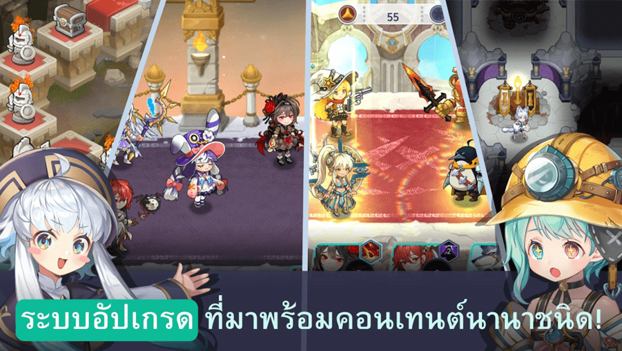 - ภาพน่ารักสดใส แนว Side-Scrolling และการเล่นแบบออโต้ เล่นง่าย แถมคงกลิ่นอายความ RPG ไว้อย่างเต็มเปี่ยม พร้อมตัวละครน่ารักเกินพิกัด!