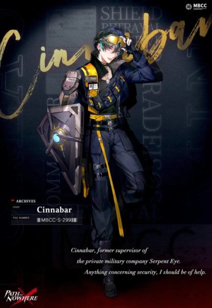 โดยตัวเกม Path of Nowhere ได้ปล่อยอาร์ตเวิร์คตัวละครใหม่ออกมาให้เราได้ชมกันโดยเป็นหนึ่งใน Sinner สาวหล่อที่ชื่อว่า Cinnabar, Endura Tendency หรือ Sinner หมายเลข MBCC-S-299 พร้อมเผยประวัติออกมาว่าเธอได้ถูกจับกุมจากการละเลยการปฎิบัติหน้าที่ในสงครามของเหล่าแก๊งค์จนทำให้พลเรือนบาดเจ็บ
