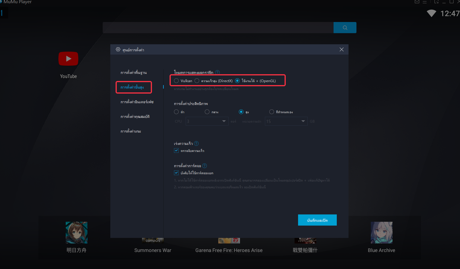 ขั้นตอนที่3 การตั้งค่าอีมูเลเตอร์ให้เหมาะสม สามารถเล่นเกมอย่างราบรื่นและเสถียร