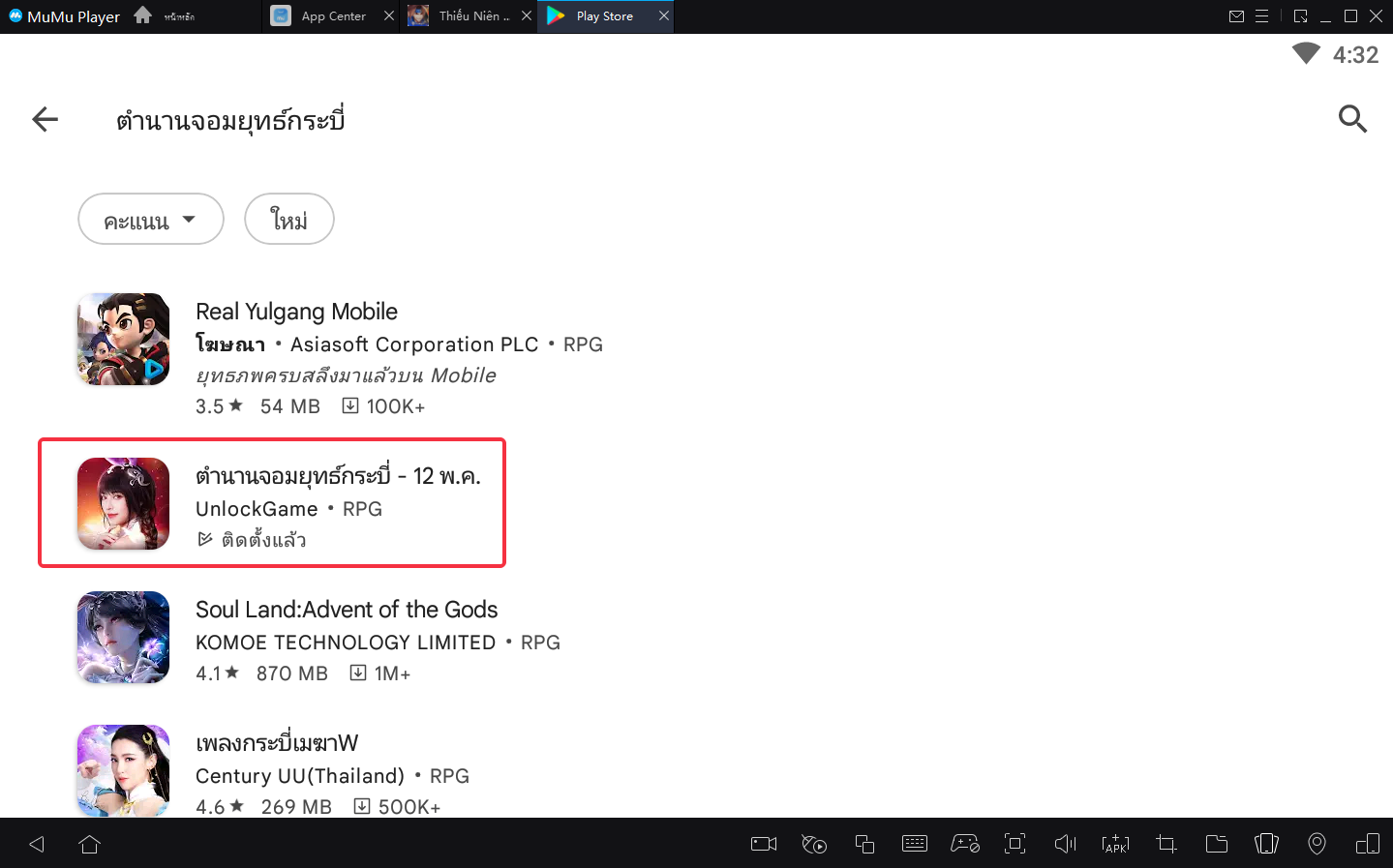 3. ค้นหา ตำนานจอมยุทธ์กระบี่ บนนั้นแล้วติดตั้ง